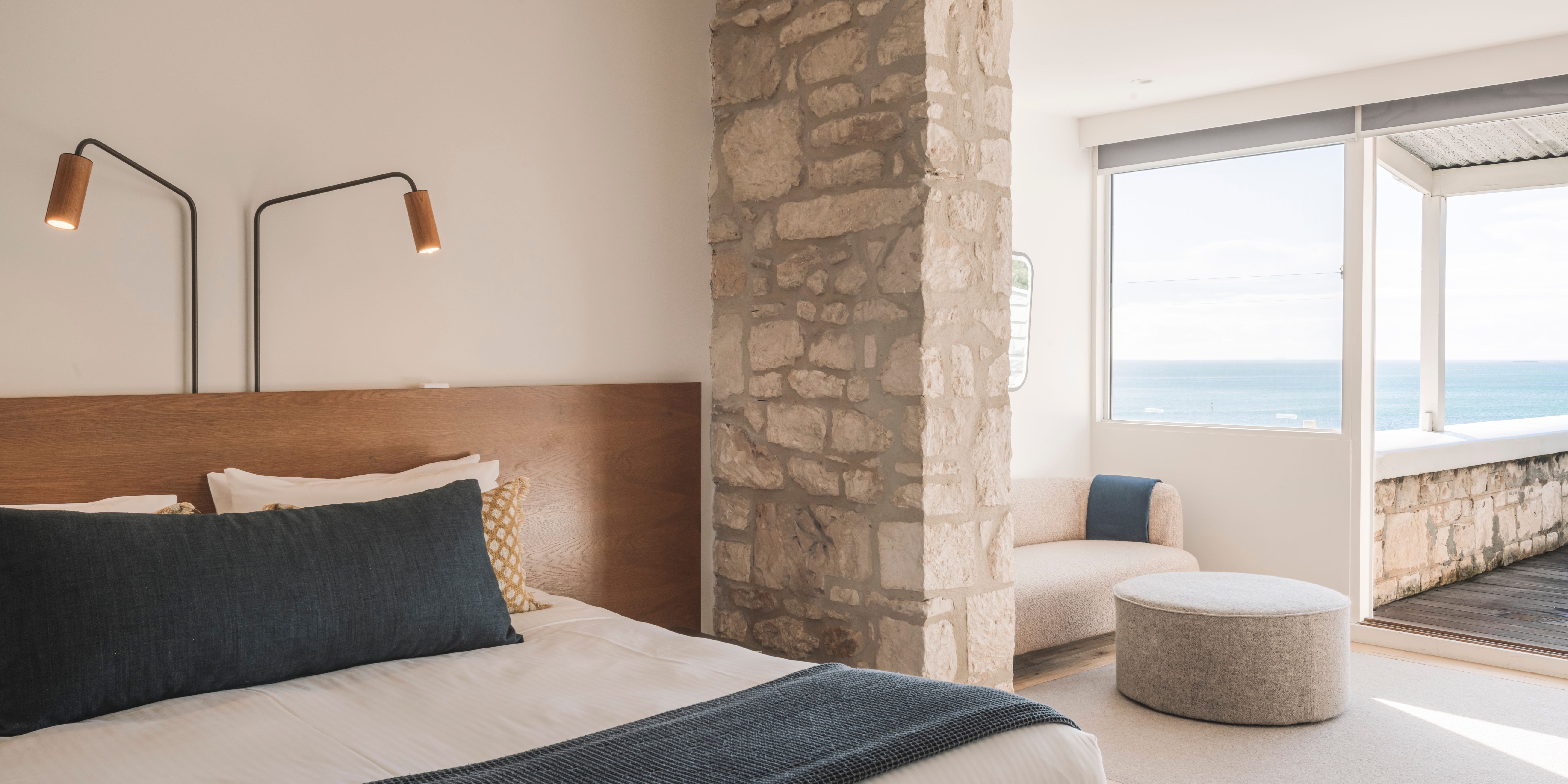 With unrivalled views of Port Phillip Bay, Heritage Suites are equipped with luxurious king-sized beds, beautifully appointed ensuite bathrooms and feature limestone walls. Each room is unique in character and charm, with some rooms featuring a balcony.