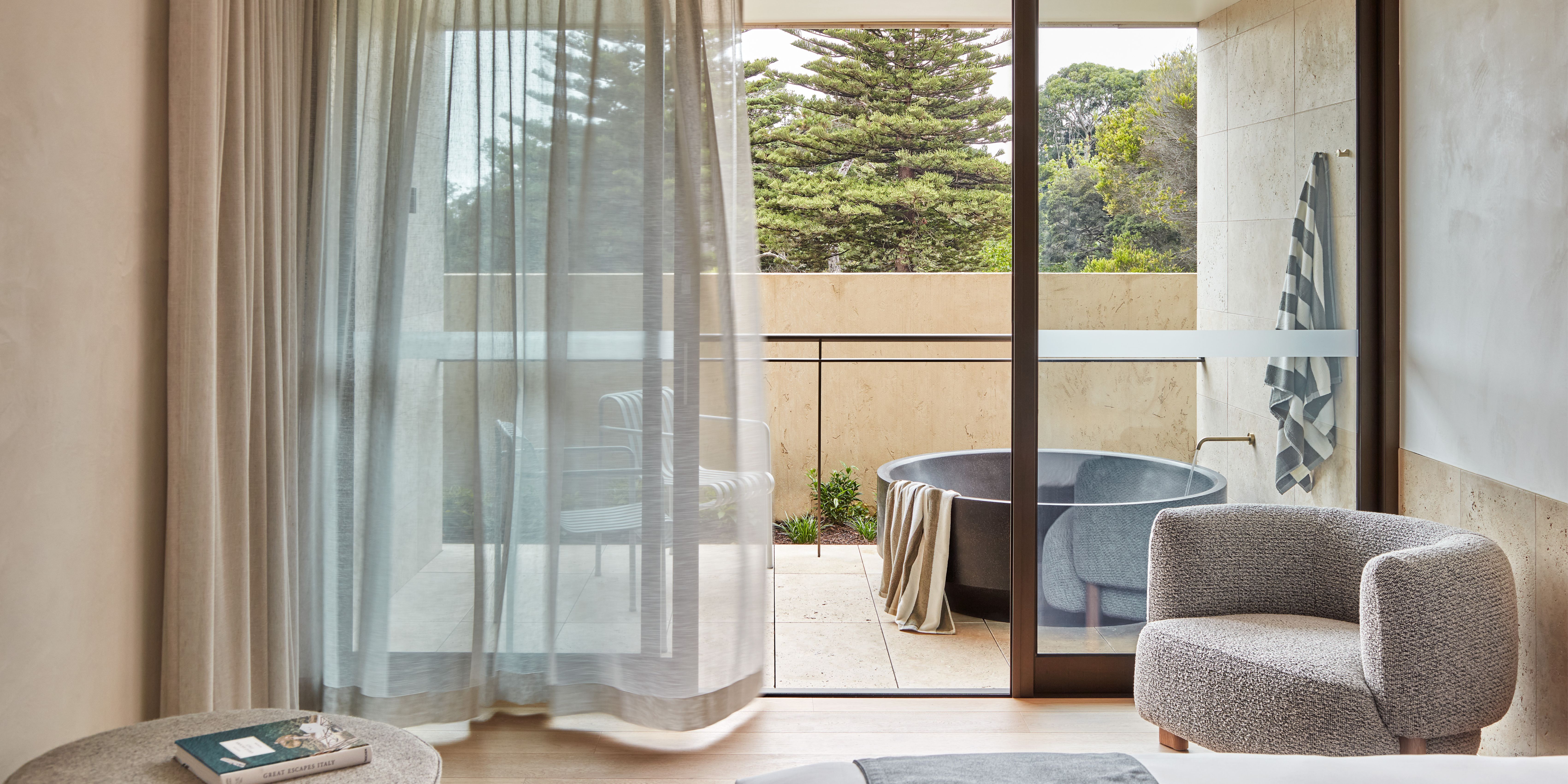 Overlooking the serene Sorrento Park, Garden Rooms are equipped with luxurious king-sized beds, spacious living areas and an outdoor terrace or balcony. Each room has a beautifully appointed ensuite bathroom, including Australian-made Biology range of products.