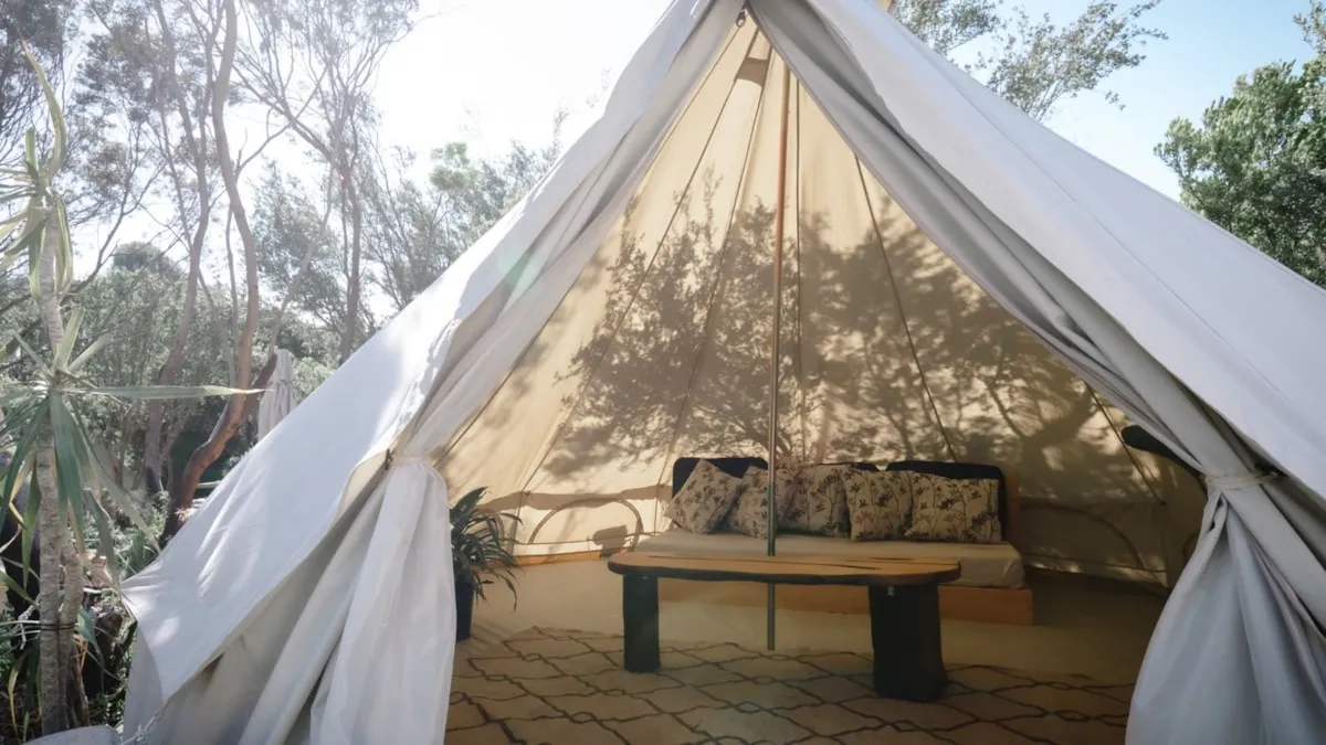 Peninsula Hot Springs 17 hectares is nestled amongst the Ti trees set in the rolling sandy dunes of 'The Cups Estate', between the Rye front beach and back ocean beach, and next door to the Moonah Links golf resort.